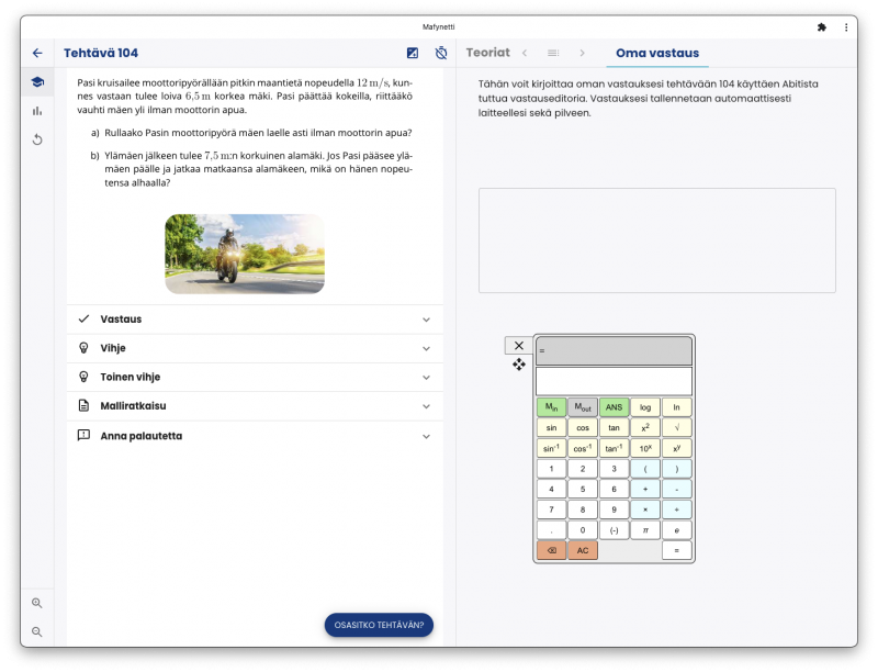 Jos sinulla on Mafyn lääkismateriaali, simuloit valintakoetta ja harjoittelet kokeessa sallitun laskimen käyttöä myös kevään mittaan harjoituskokeissa. Harjoituskokeissa on käytössä samanlainen laskin kuin valintakokeessakin – Mafynetin funktiolaskin.