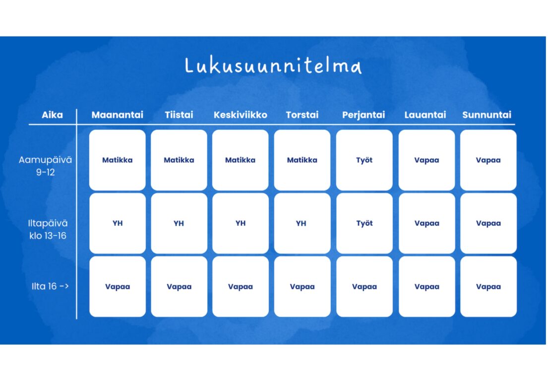 Opiskelu ilman lukusuunnitelmaa on kuin autolla ajo ilman rattia; on vaikea pysyä sopivalla tiellä. Lue alta, miten teet hyvän lukusuunnitelman.