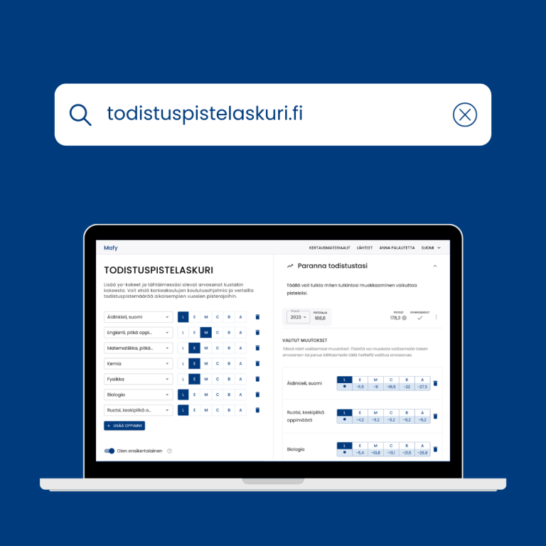 Testaa lisäksi helposti, mitä aineita korottamalla saat riittävät pisteet ykköstoiveeseesi!